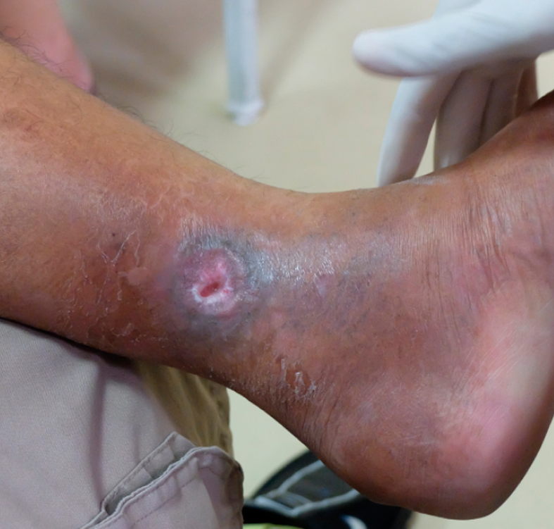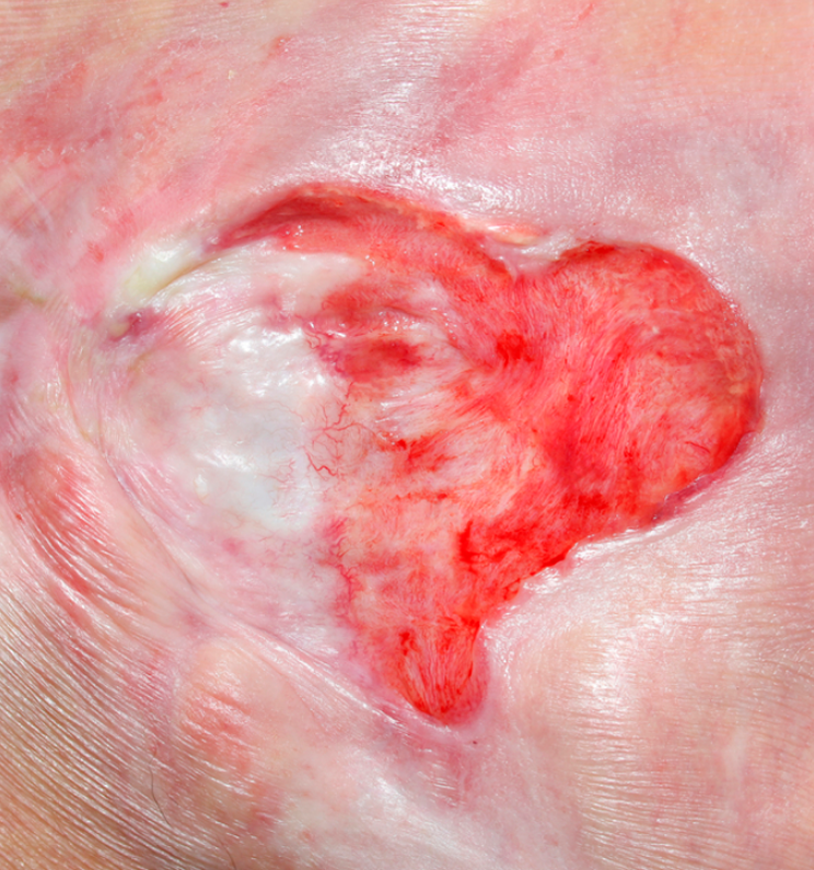 Aunque en principio la úlcera es seca, puede volverse húmeda, lo cual es indicativo de infección y empeora el diagnóstico.